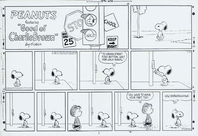 Linus, "You have to move your feet too"! Snoopy, "How Embarrassing"!