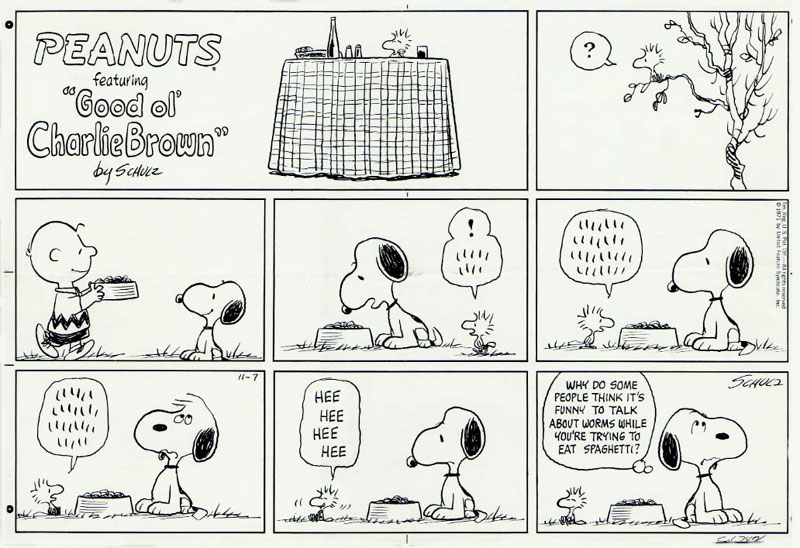 "Why do some people think it's funny to talk about worms while you're trying to eat spaghetti?"