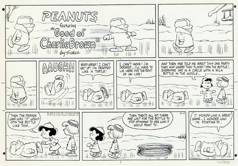 "GOOD GRIEF! I can't get up! I'm trapped like a turtle!"