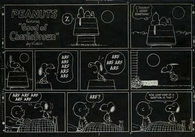 These RARE Paper Negative Prints are the original contact Negatives for the original Strips as drawn by Charles M. Schulz, all dating back to his classic period; 1968, 1969 and 1970. After the completion of each Peanuts Strip, Paper Negative Prints were made, and with these Negatives they made Positive Photostats which were distributed to Newspapers throughout the World. The first Paper Negative process was actually created by William Talbot back in the 1830's. The Metropolitan Museum of Art in NYC had an exhibit of Talbot's Negative Prints "Impressed by Light: British Photographs from Paper Negatives, 1840-1860" "There is nothing quite like the earliest stages, when the paper negative itself took on a look and feel that made the 19th century photography community want to exhibit the negatives themselves--and they often did." In 1973 Charles Schulz (Creative Associates) sent the following Negative Prints to Gene Persson, co-producer of the hit musical YOU'RE A GOOD MAN, CHARLIE BROWN, to be used as source material for the development of a new PEANUTS stage musical. SNOOPY! THE MUSICAL premiered on December 9, 1975 at the Little Fox Theatre in San Francisco, California. NEGATIVE PRINT DIMENSIONS: 14 1/2" X 10 1/4" Negative Prints come with a FREE matching positive Photostat Print. Click on link: FRAMED NEGATIVE PRINT Click the Negative Print for larger images and more info! |