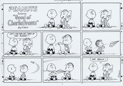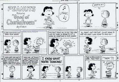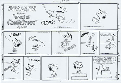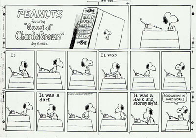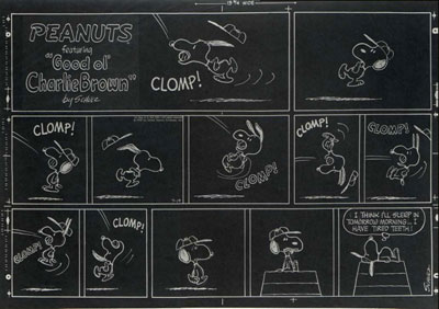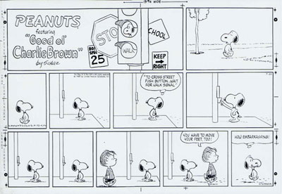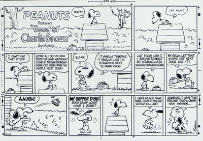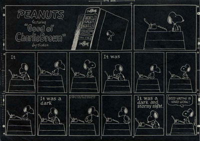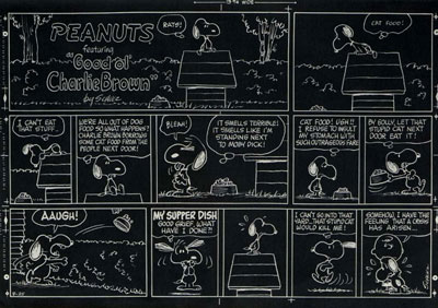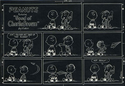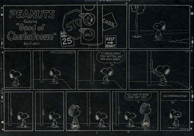 These RARE Paper Negative Prints are the original contact Negatives for the original Strips as drawn by Charles M. Schulz, all dating back to his classic period; 1968, 1969 and 1970. After the completion of each Peanuts Strip, Paper Negative Prints were made, and with these Negatives they made Positive Photostats which were distributed to Newspapers throughout the World. The first Paper Negative process was actually created by William Talbot back in the 1830's. The Metropolitan Museum of Art in NYC had an exhibit of Talbot's Negative Prints "Impressed by Light: British Photographs from Paper Negatives, 1840-1860" "There is nothing quite like the earliest stages, when the paper negative itself took on a look and feel that made the 19th century photography community want to exhibit the negatives themselves--and they often did." In 1973 Charles Schulz (Creative Associates) sent the following Negative Prints to Gene Persson, co-producer of the hit musical YOU'RE A GOOD MAN, CHARLIE BROWN, to be used as source material for the development of a new PEANUTS stage musical. SNOOPY! THE MUSICAL premiered on December 9, 1975 at the Little Fox Theatre in San Francisco, California. NEGATIVE PRINT DIMENSIONS: 14 1/2" X 10 1/4" Negative Prints come with a FREE matching positive Photostat Print. Click on link: FRAMED NEGATIVE PRINT Click the Negative Print for larger images and more info! |